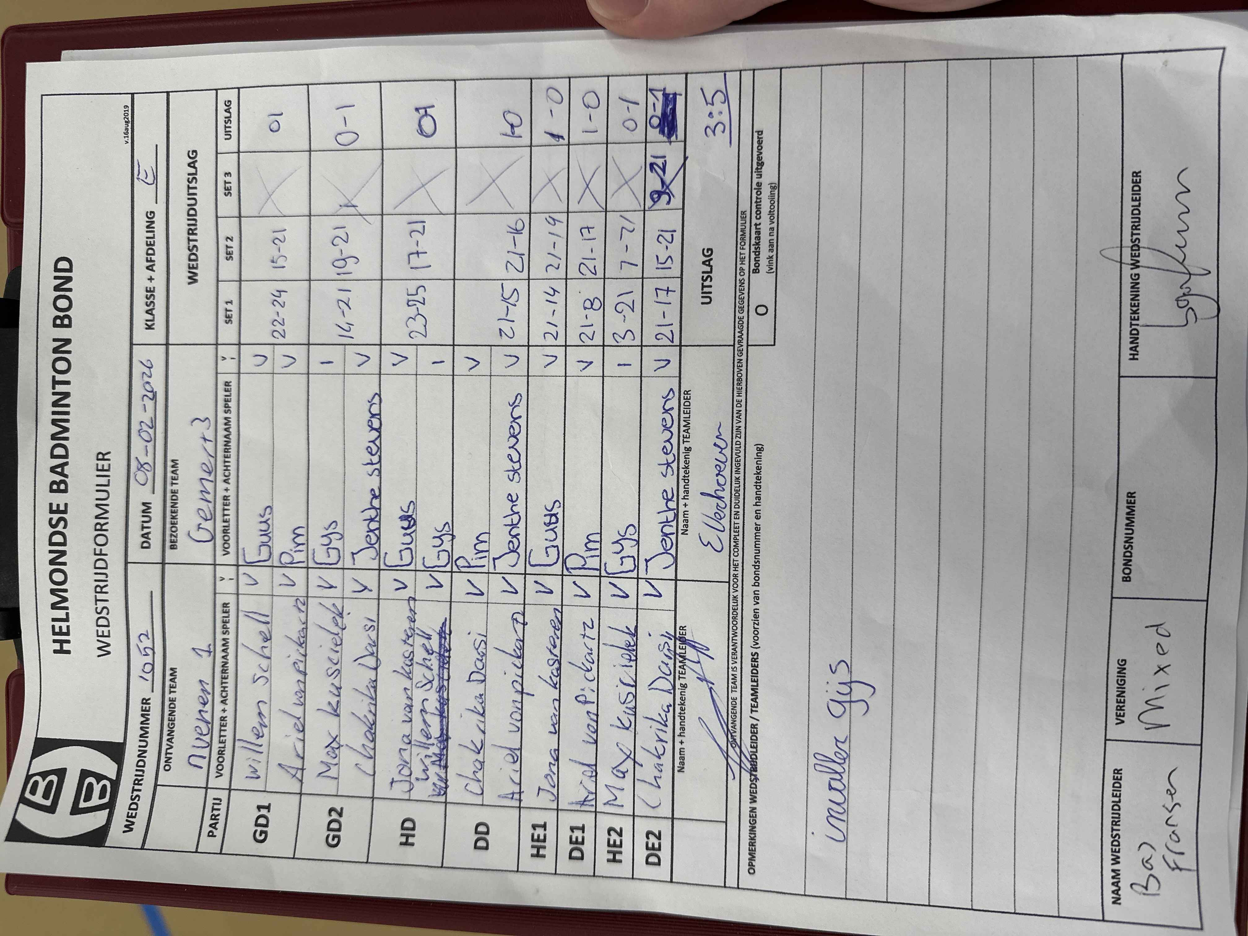 | 09:30 | zo 01-02-2026 | Mixed 5 | - | Nuenen 1 | 1 | 5 - 3 | ||