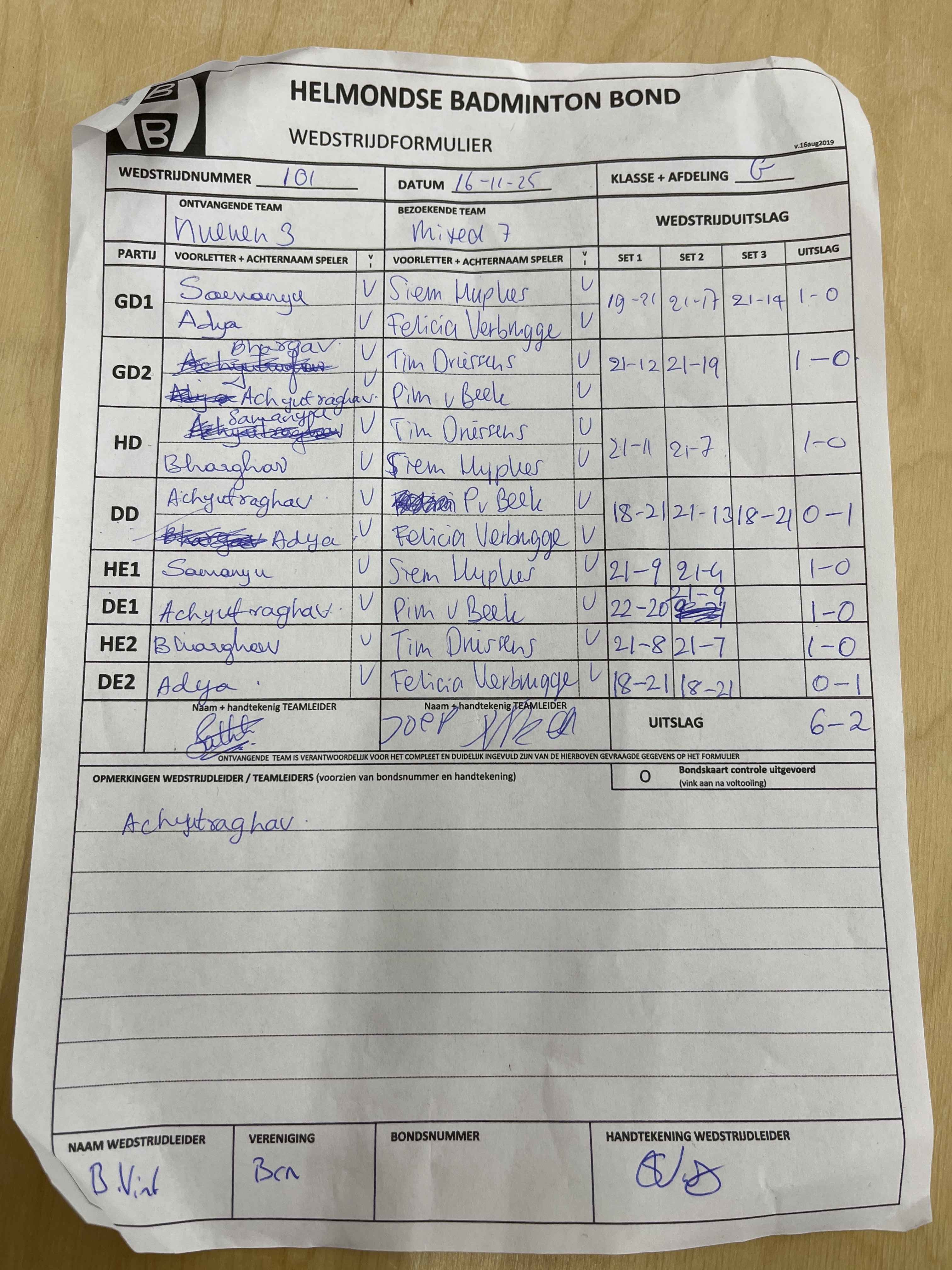 | 12:30 | zo 16-11-2025 | Nuenen 3 | - | Mixed 7 | 13 | 6 - 2 | ||