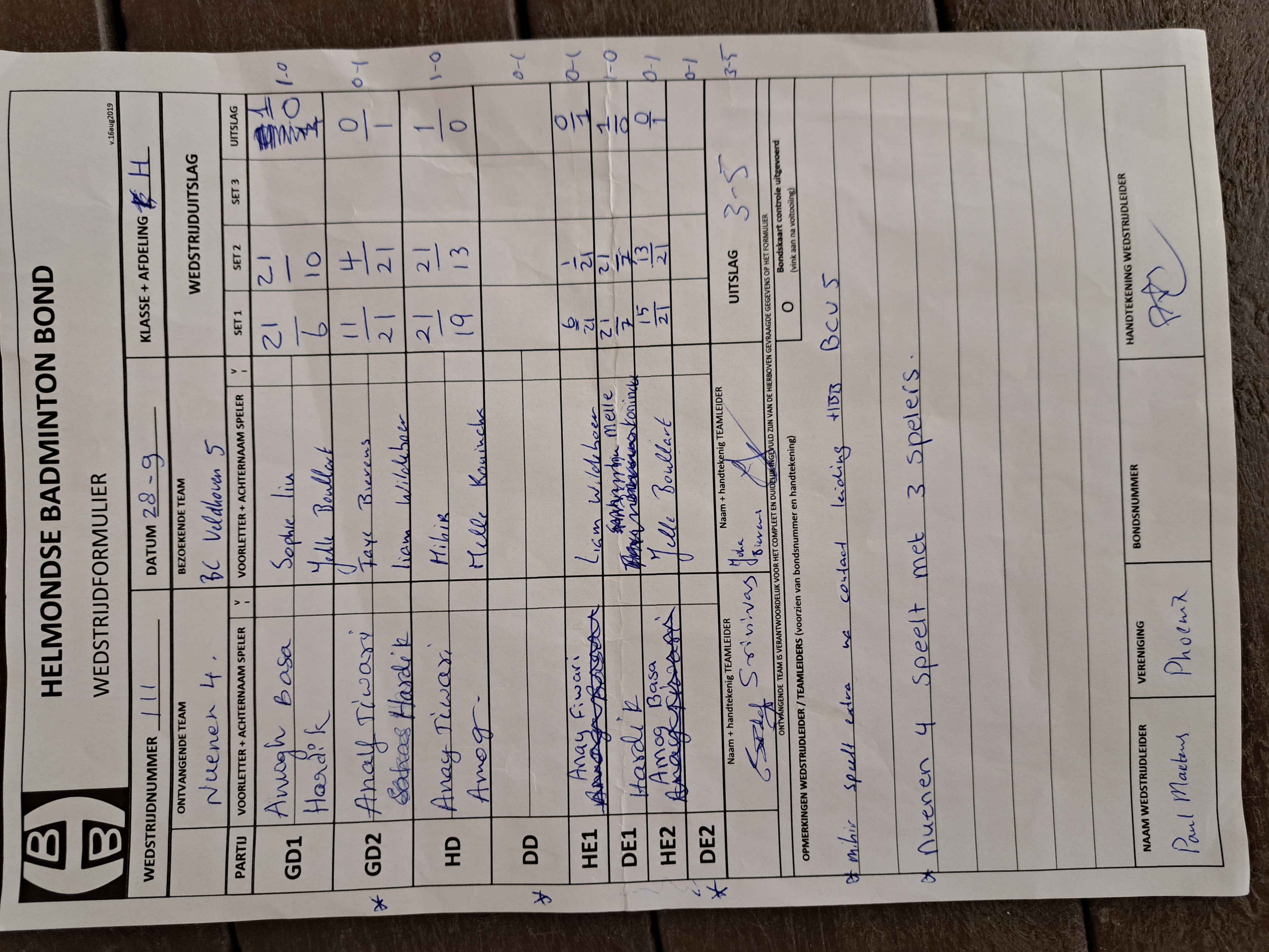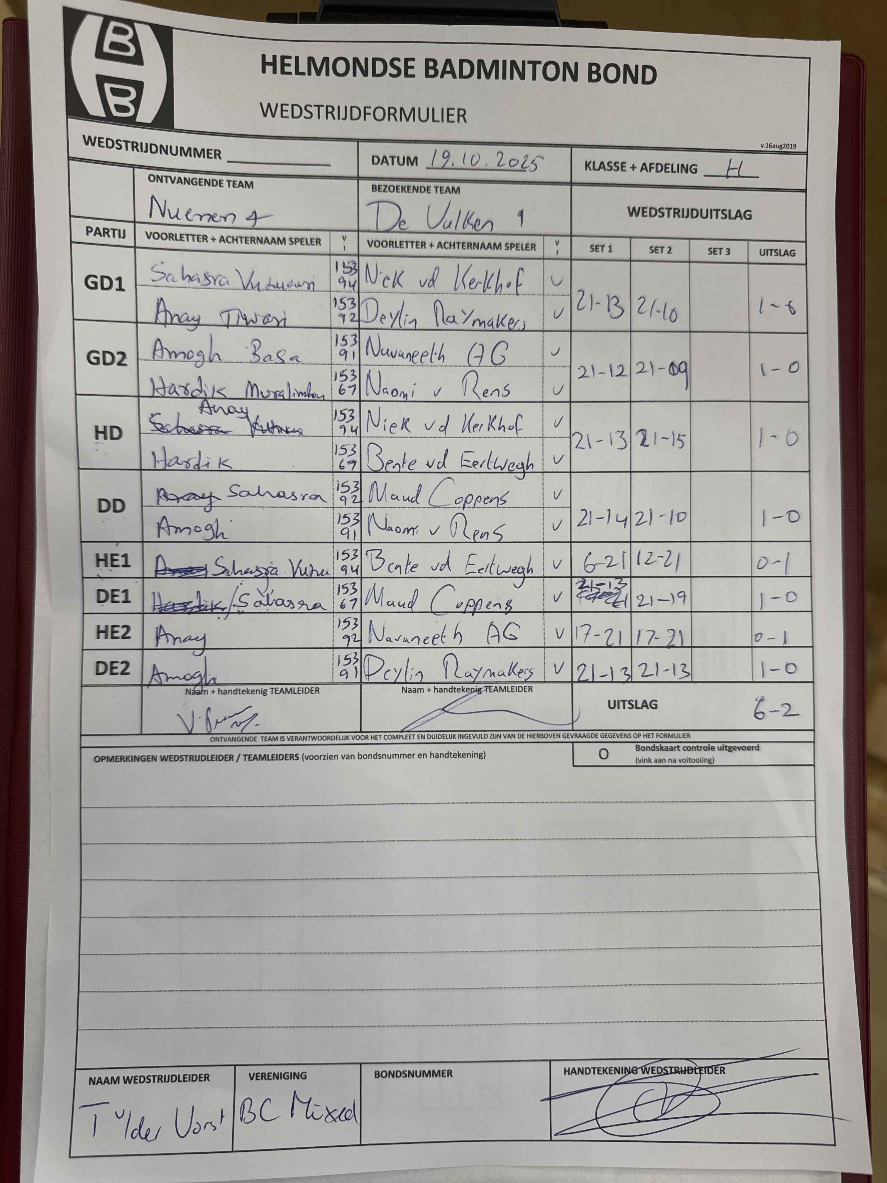 | 09:30 | zo 30-11-2025 | Mixed 8 | - | Nuenen 4 | 10 | - | ||