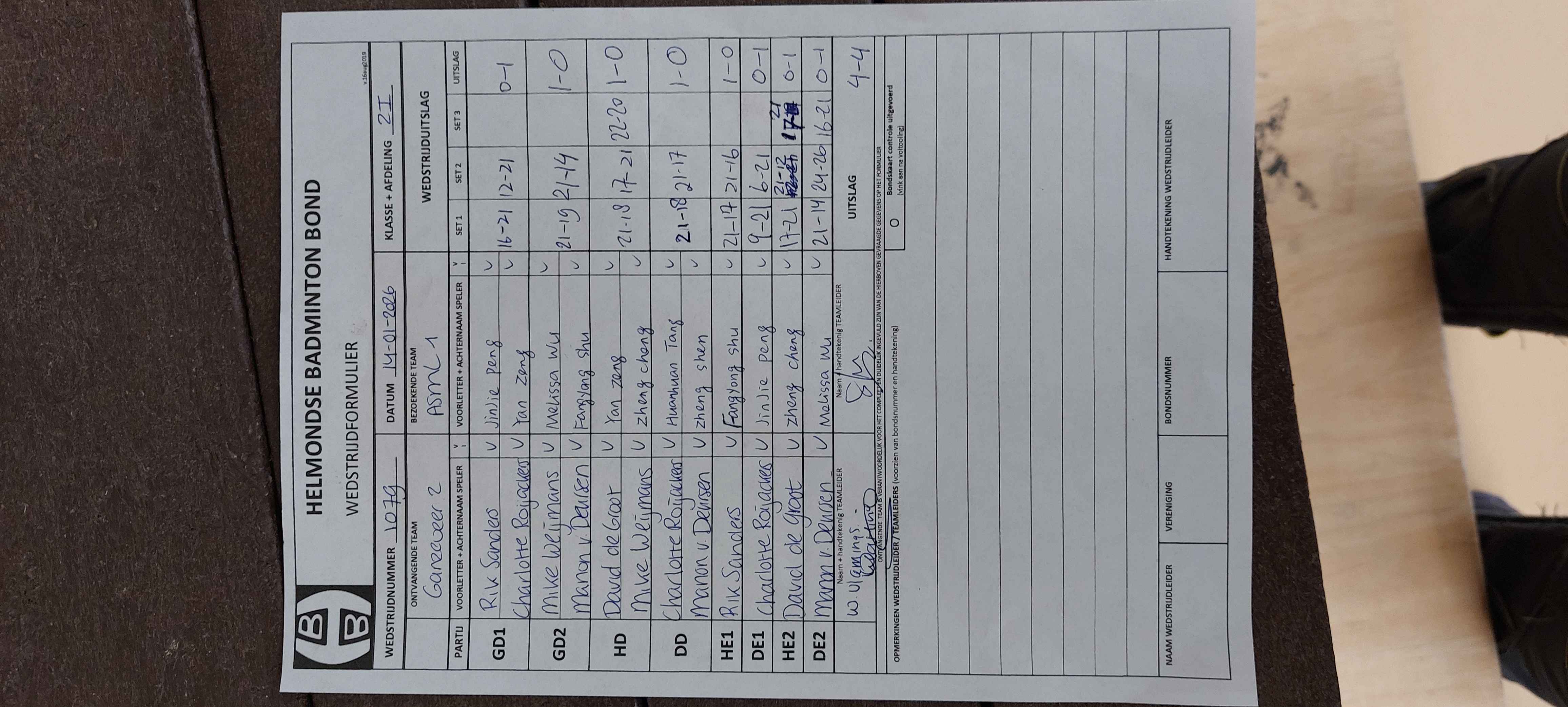 | 1079 | wo 14-01-2026 | Ganzeveer 2 | - | ASML 1 | 15 | 4 - 4 | |||