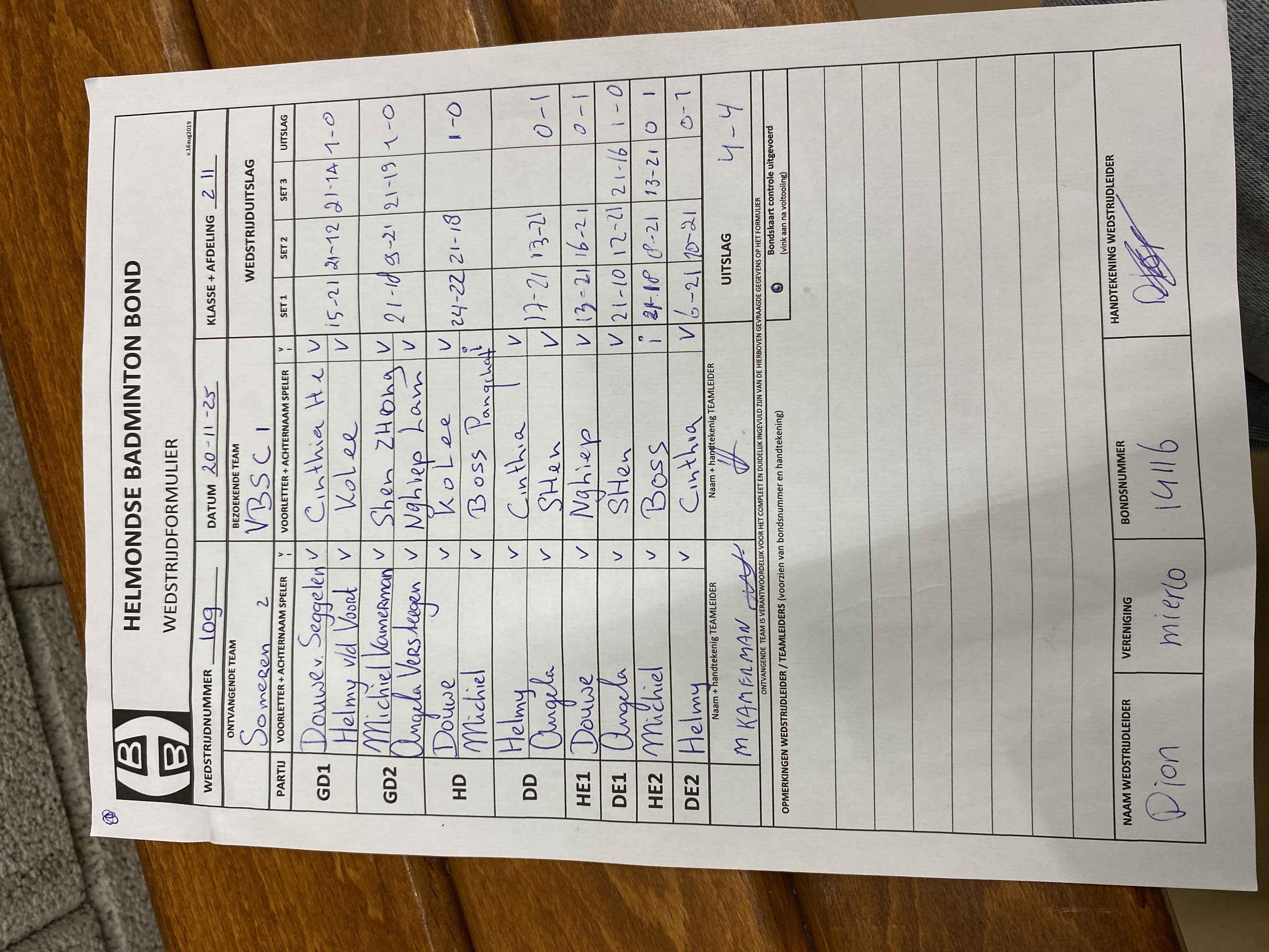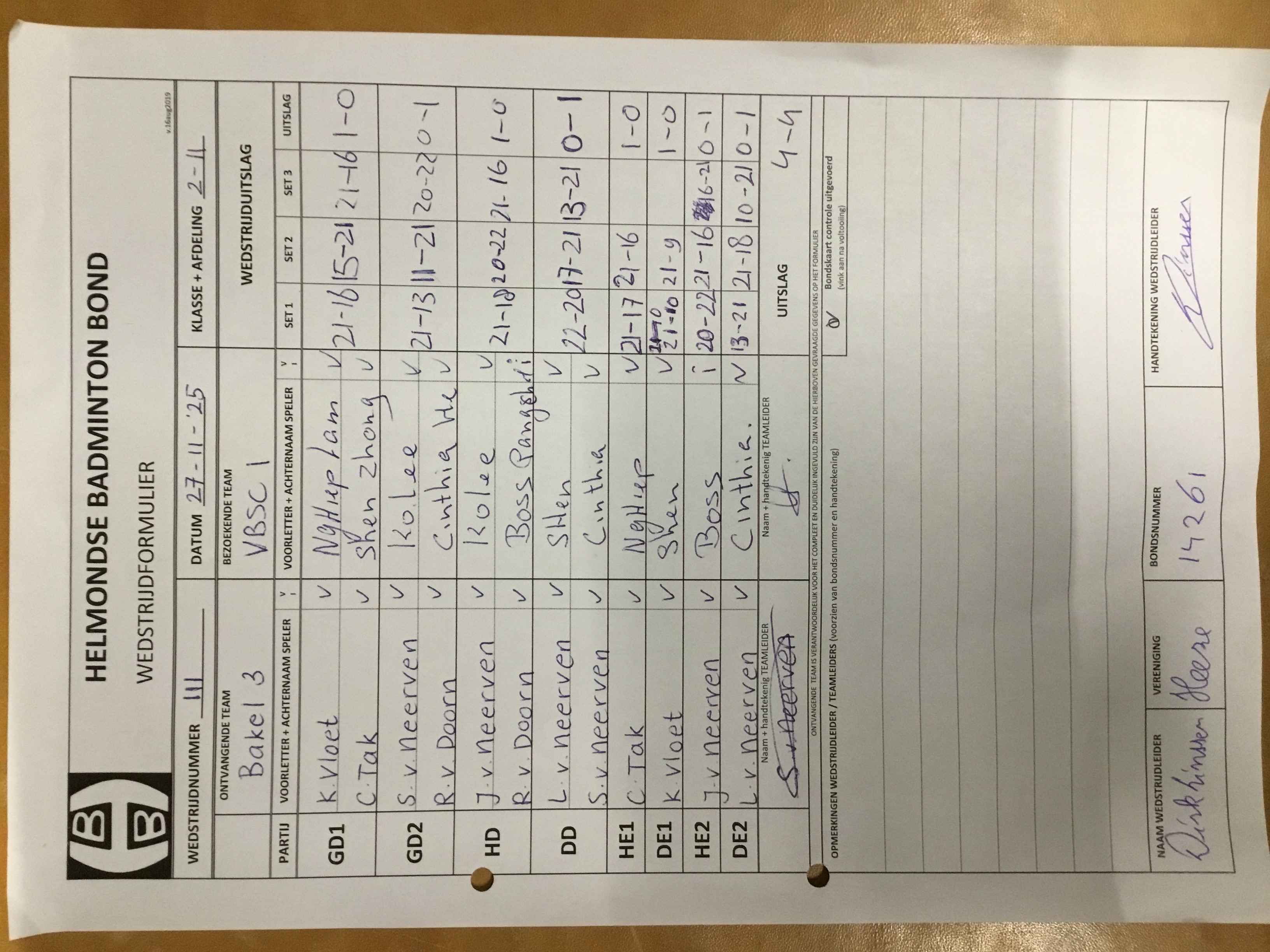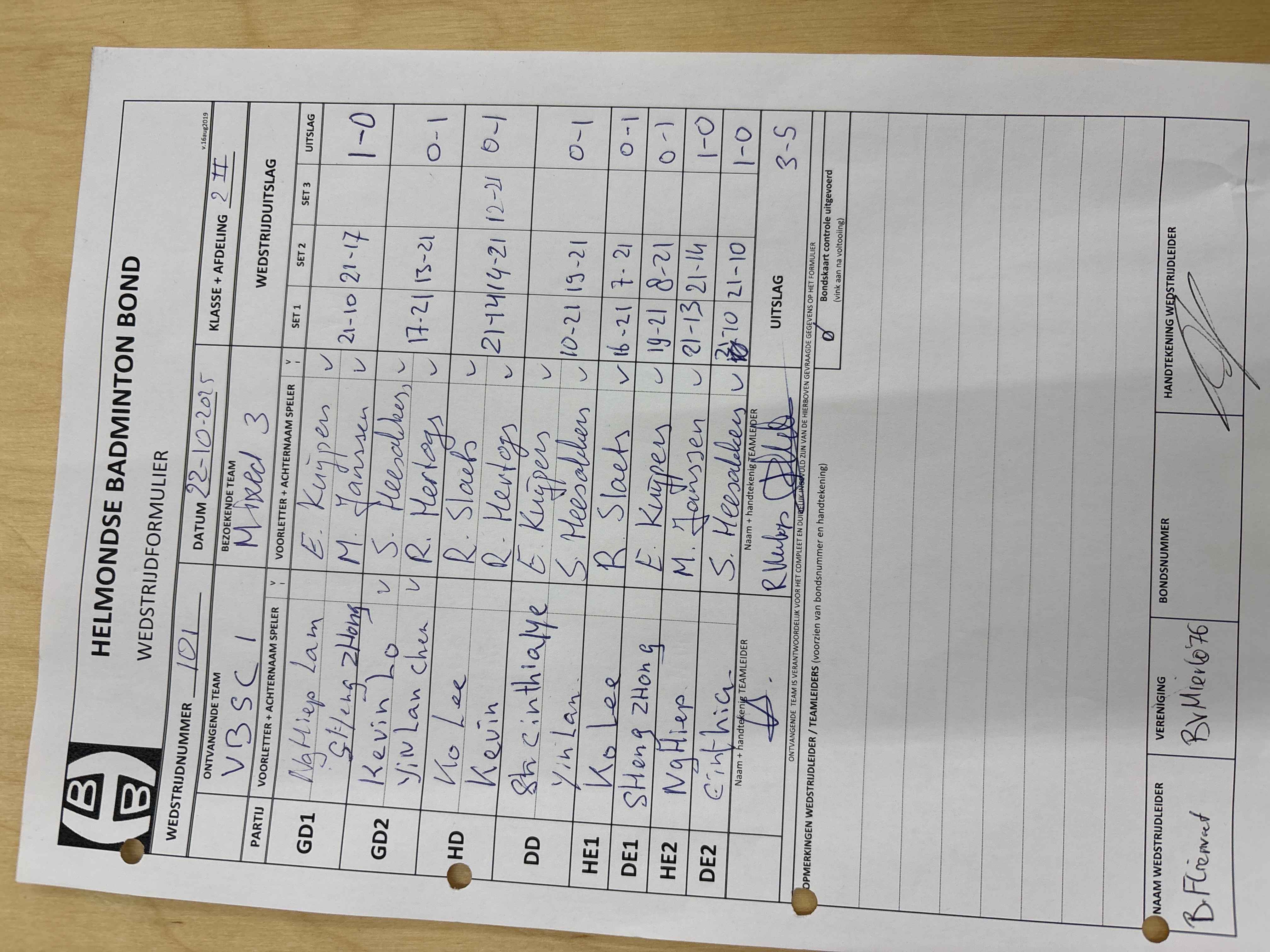 | 101 | wo 22-10-2025 | VBSC 1 | - | Mixed 3 | 13 | 3 - 5 | |||