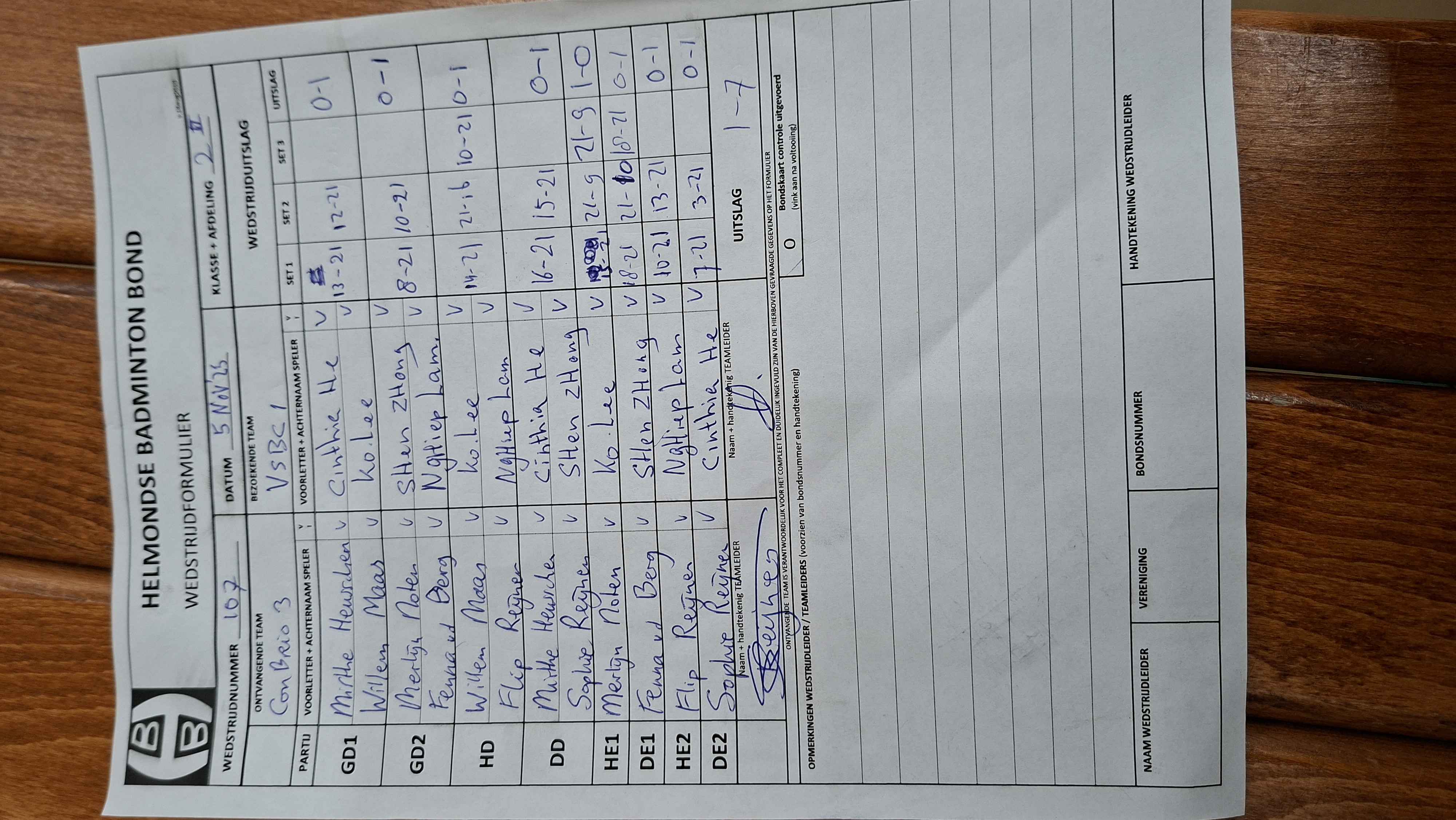 | 107 | wo 05-11-2025 | Con Brio 3 | - | VBSC 1 | 12 | 1 - 7 | |||