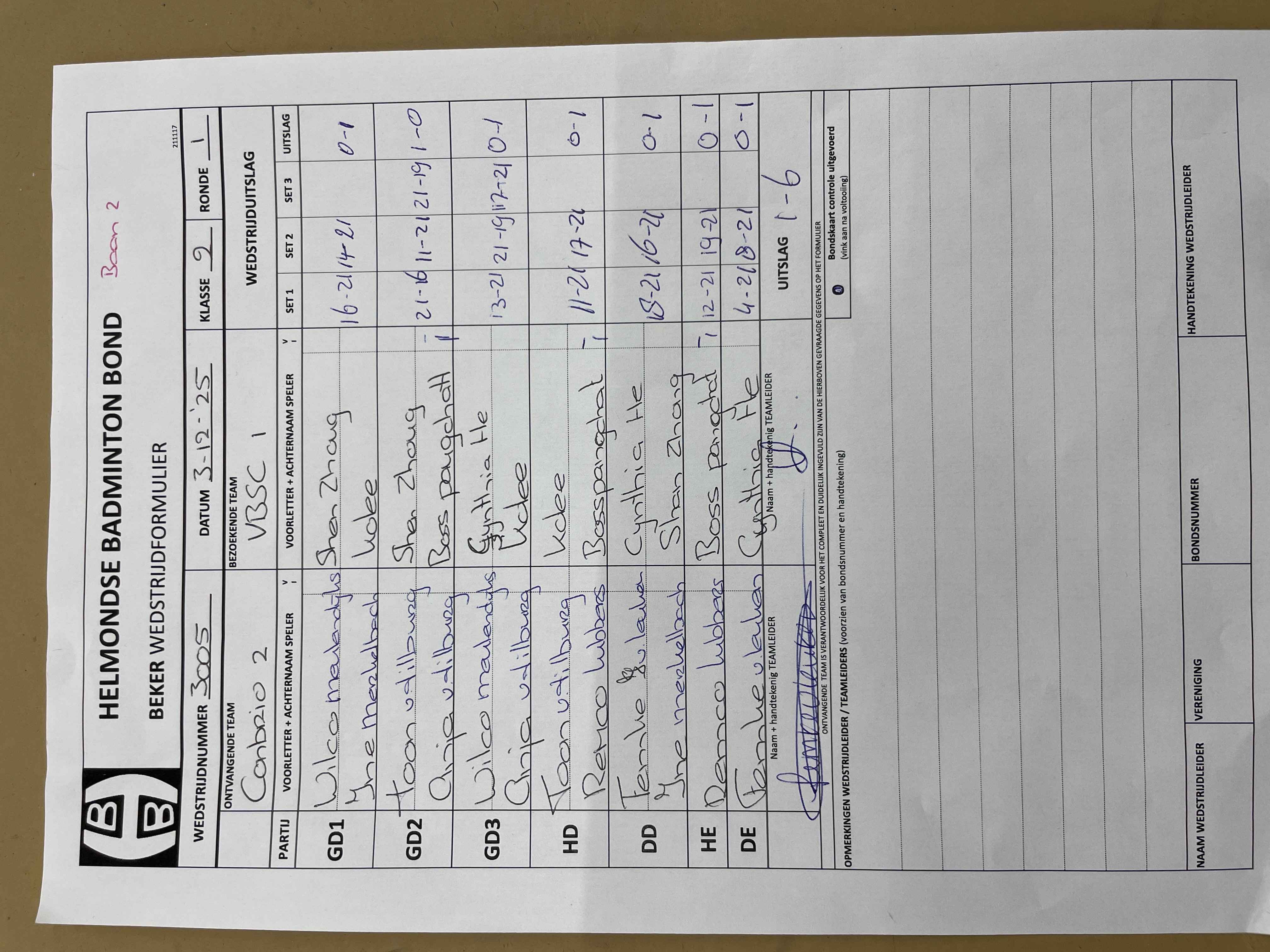 | 3005 | wo 03-12-2025 | Con Brio 2 | - | VBSC 1 | 2 | - | |||